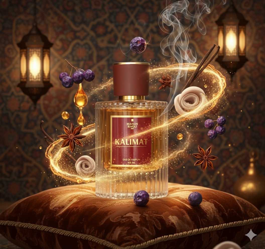 Sur la peau, Kalimat se déploie comme une étole précieuse, un sillage d'une sensualité littéraire, réconfortant et infiniment addictif. C'est le parfum idéal pour les soirées d'hiver, une invitation à se lover dans une histoire des Mille et Une Nuits.